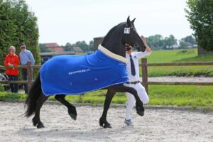 De twee Modelmerries zijn oudgedienden op de fokdagen van It Fryske Greidhynder, maar wat lieten ze zich weer geweldig zien, een genot om naar te kijken. Valentina fan ‘e Ridderdijk Model Sport AAA (Alwin 469 x Fridse 423) uit de fokkerij van Tiemon en Annie Duiven-Lettinga heeft volgens de juryleden een ‘extreem goede rasuitstraling’ en sierlijke belijning. Ze stapte zoals het hoort: actief en ruim en draafde met machtige passen rond. Valentina’s indrukwekkende optreden leverde haar het kampioenschap bij de zeven jaar en oudere merries èn het reserve-fokdagkampioenschap op. Haar stalgenote Sanne T.T. Model Sport AA (Alwin 469 x Beart 411), reservekampioen van de oudere merries, deed niet veel voor haar onder. Ook zij heeft haar eerste premie aldus Terpstra ‘dik verdiend’. Beide merries zijn dit jaar ingezet voor embryotransplantatie zodat ze in puike conditie op de Centrale Keuring kunnen verschijnen. Jaap van der Meulen kan weer trots zijn op zijn kampioensmerries.