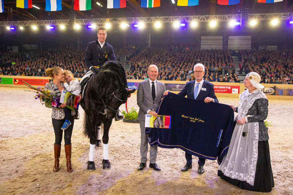 De ruiter sloot dit jaar noodgedwongen af op het kerstconcours in Exloo, waar hij met Elias een score van 69,6% haalde. In het zadel van ‘Ferrari’ Gigantisch (Anders 451) reed de ruiter naar 66,1%. ‘Ik heb Gigantisch als jong paard gereden en kwam hem vaak tegen op clinics. Ik wilde graag dat zo’n paard in het buitenland niet in de resultaten verloren gaat, omdat ze daar niet altijd veel waarde hechten aan stamboekgegevens bijhouden. Helemaal omdat het een zoon van Anders is heb ik er zelf ook belang bij. Ons eerste doel was om het Elitepredicaat te behalen. Hij heeft al vijf winstpunten in de Prix St. George, maar de helft daarvan heeft hij in Zweden behaald. In principe is hij al Elite, maar ik wil het zelf nog helemaal afmaken. Afgelopen jaar heeft hij drie wedstrijden gestart waar twee weken tussenzaten, met scores van 62%, 64% en 66%. De punten gingen vlot omhoog en ik weet zeker dat er nog veel meer in dit paard zit’.