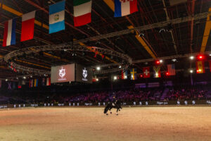 Er zijn van die hengsten die alleen maar een bak nodig hebben, geen hekjes, geen letters … geef ze gewoon een grote piste en ze stijgen naar grote hoogte! Zo gaat dat voor Alger 522 van Stal Chardon. Met dressuurkrack Jacob van der Heide vormt de 10-jarige Alger 522 een magisch duo, ze halen het beste in elkaar naar boven. De hengst komt uit in de Lichte Tour, maar speelt al met de wissels en laat zijn talent voor de Grand Prix oefeningen zien.