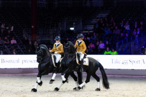 Gouverneur fan ’t Hertefean –dankzij zijn veelzijdigheid genomineerd voor Paard van het Jaar – met Harmina Holwerda én Fryso’s Jannick – nog zo’n echte Nane – met Sofi Vaisanen in het zadel rijden een prachtige pas-de-deux waarbij de kampioensjerpen een centrale plek innemen. Prachtig, origineel en indrukwekkend.