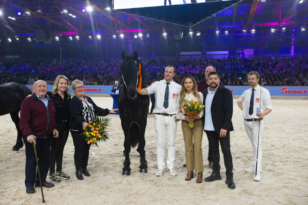 De reservekampioen van 2024, Martinus 539, staat heel goed in het model; hij liet een goede prestatie zien in het hengstenbal. Hengst met sterke bovenlijn; in draf werd hij wat loperig.