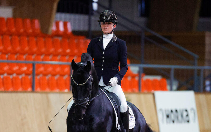 De Friese paarden hebben zich prima gepresenteerd tijdens de KNHS Indoorkampioenschappen L1, L2 en M1 op vrijdag 8 maart in Ermelo. Nadia den Hollander haalde met haar hengst Uzes (Aarnold 471) de hoogste klassering.