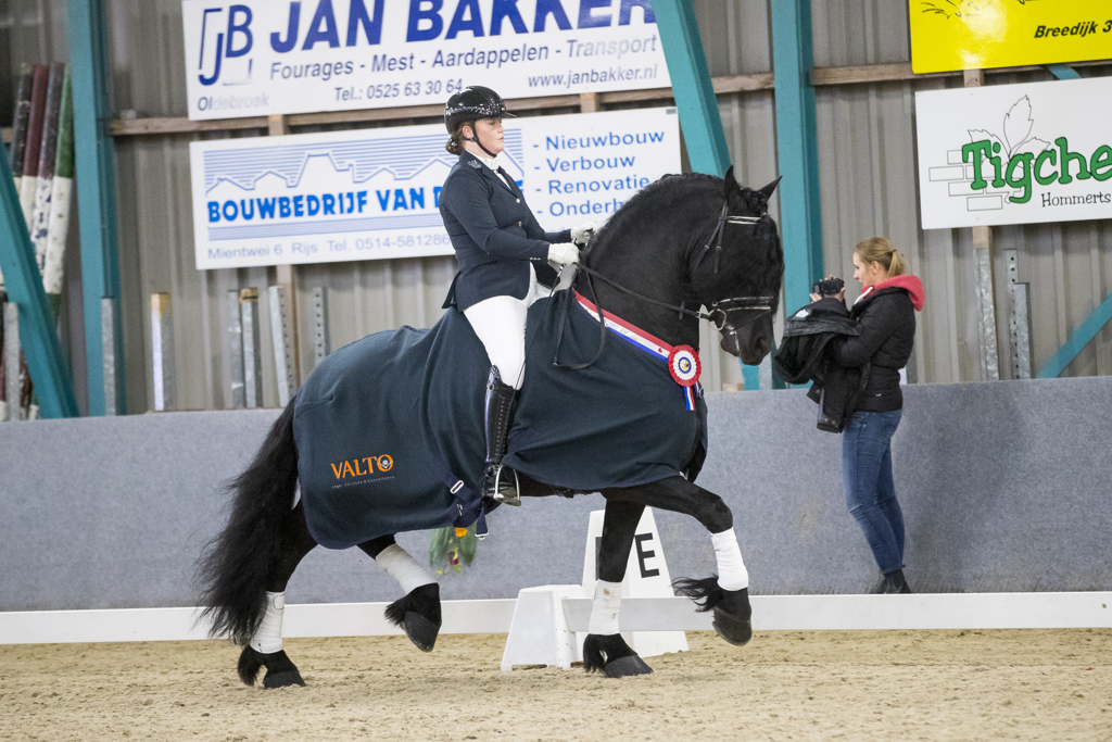 Nadia startte in de L1 dankzij het Friese regiokampioenschap dat ze met Uzes begin februari binnenhaalde. ‘Ik heb lekker gereden, maar ook hier en daar wat foutjes’, aldus Nadia over hun prestatie. Op het kampioenschap komen geselecteerden uit alle regio’s van Nederland. Uzes gedroeg zich ondanks zijn jeugdige 5-jarige leeftijd voorbeeldig en liet met zijn fraaie uitstraling een imponerende indruk achter, zo viel te beluisteren langs de ring. ‘Hij was lekker bij de les en fijn te rijden. Het was een hele mooie ervaring’, aldus Nadia die tevreden was met de score van 63,389%, goed voor een 19e plaats. ‘We hebben genoten en met de Friese paarden een mooie promotie voor ons ras gemaakt.’