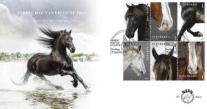Op de postzegels staan naast Izaak als vertegenwoordiger van het Friese ras, ook Gelderlander Hobbyant, het Nederlandse trekpaard Bonnie en de Groninger Legende met haar veulen Sophia model. De foto’s van de zegels geven het heel beeld van de paarden weer, maar ook details. Vanaf 13 september is het velletje postzegels én de eerste dagtekening-envelop te koop bij de postkantoren en via de site van de N.V.P.H. (Nederlandse Vereniging van Postzegelhandelaren).