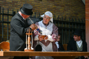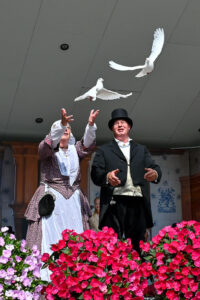 Woensdag 24 juli 2024, de 68e boerenbruiloft op de Joure, stond deze keer volledig in het teken van de trouwerij tussen Sipke Riemersma en Sonja van der Meer. Een stel wat ook officieel in de echt verbonden is. De trouwlustigen kennen elkaar al vanaf hun jeugd, waarbij Sonja destijds stiekem al een oogje op Sipke had. Hun levenspaden liepen echter anders. Maar zo’n vier jaar geleden zag Sipke Sonja zitten op een bankje op een evenement en sloeg de vonk toch nog over tussen hen beide. “Ik wil wel met je trouwen” had Sipke onlangs gezegd, maar dan alleen op de Boerebrulloft in Joure en zo geschiedde…..!