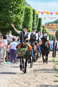 Na het eten wordt er gestreden. Eerst door de dappere rijders op de ongezadelde paarden. Na een flink aantal ‘kampritten’ waarbij de uitslag steeds gelijk bleef tussen de twee componenten werd het uiteindelijk toch veteraan Geertje van der Veen uit Joure die al haar collega’s te snel af was en er met de zilveren karwats vandoor ging. De middag ging vervolgens verder met een demonstratie van Lyts mar Krigel, de menclub voor hele jeugdige rijders die straks ongetwijfeld de toekomst gaan vormen voor de aangespannen sport. Rond 15.00 uur was het tijd voor het ringsteken. De kersvers getrouwde Sonja bleek niet zo talentvol in het spelletje en eindigde op de laatste plaats. Jehan en Bernice Bouma uit Aldeboorn waren echter wel heel succesvol in het steken van de ringen want zij scoorden de meeste punten. Het echtpaar deed dit al voor de derde maal op rij en wonnen daarmee definitief de zilveren zweep!