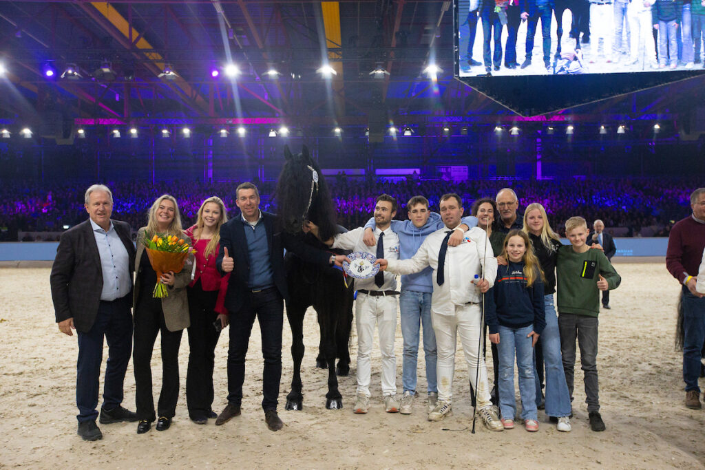 Maar ook Markus 491 -’met zijn bloedmooie hoofd en veel behang’ – liet een constante en hele sterke presentatie zien. De reserve algeheel kampioen van 2016 en 2019 werd derde, gevolgd door Nane 492 ‘met zijn spectaculaire voorbeengebruik’. De plaatsing verder in de rubriek werd vervolgens Meinte 490, Omer 493 en Jouwe 485.