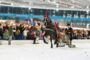 De sfeer in Thialf zat er met Friesians on Ice op zondagmiddag al meteen goed in. Een (aan één zijde) volgepakte tribune, een dweilorkest en een middenterrein vol kraampjes brachten bijna 3500 mensen naar de schaatstempel in Heerenveen voor het NK Beljeien. 22 combinaties verschenen enthousiast en getraind aan de start, met arrenslee én in Fries kostuum. Eindelijk was het na zes jaar weer zover.