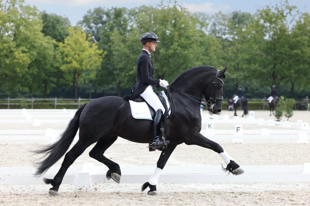 Anne Rikst zal in 2023 de Young Riders competitie starten met een oude bekende. De tienjarige Model Sport AAA merrie Susanne (Norbert 444 x Wikke 404) wordt door eigenaren Lammert en Monique de Boer van Terschelling aan haar toevertrouwd. Om de herinnering weer even op te frissen….Susanne stond in 2021 ook al bij de Eppinga’s op stal en werd in handen van Hendrik een aantal keren uitgebracht op nationale concoursen met zelfs de kampioenstitel bij de merries tot gevolg. “Vorig jaar zijn Harm en ik naar Terschelling geweest en hebben we ook even een bezoek gebracht aan Suus. Ik vertelde toen aan Lammert en Monique dat ik haar zo’n leuk paard vond. Dat was de aanleiding voor deze kans om haar nu te rijden” zegt Anne Rikst. “Ik vind Suus echt een fijn paard. Voor mij is ze een heel mooi leerpaard. Suus snapt hoe het werkt. Ze kan het mij mooi leren” gaat ze verder. “Ook mijn vader helpt mij natuurlijk. We oefenen samen. Dan rijden we even naar de manege en rijden we om de beurt en vertellen we aan elkaar wat we ervan vinden. Soms maken we ook even een filmpje voor Terschelling” laat ze weten. Monique de Boer zei onlangs nog: “Het is zo mooi om de jeugd op deze manier verder te kunnen helpen. Susanne heeft al veel bereikt. Hoe leuk is het dan dat zo’n jong enthousiast meisje met haar verder gaat”.