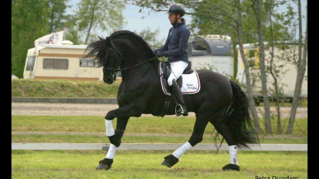De kwaliteitsvolle tienjarige Tsjalle 454-merrie is een merrie met de ‘wauw’- factor, aldus Joukje. ‘Ze is erg leergierig, vlug, een tikkeltje sensibel en snel heet. Ik train met haar bij Hergen van Hall met name op ontspanning en controle.’ Manna haalde al snel haar Sportpredicaat en een nieuw doel werd gesteld: Sport Elite. Na de finale van de Horses2fly indoorcompetitie in februari dit jaar, waar ze in de klasse Z2 beslag legde op het brons, kreeg Manna te maken met een lichte blessure. Besloten werd haar in alle rust te laten herstellen en op de fokdag It Fryske Hynder maakte de combinatie een spetterende comeback met een verdiende finaleplek in de rubriek Bestgaand Rijpaard.