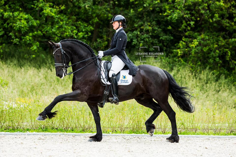 De negenjarige Kai kreeg bij de geboorte de naam Knillis V. Fan de Miedwei mee. De Sterruin komt uit merriestam 214. Zijn moeder is Stermerrie Tjikke V. (Doaitsen 420), een volle zuster van de KFPS Stamboekhengst Sjouke 453. Ruim een jaar geleden kwam Kai naar Stoeterij Galloper, waar Debby stalamazone is. Hij was toen net Z2-geklasseerd. ‘We zagen zijn dressuurtalent.’ In het najaar van 2019 reden Kai en Debby verdienstelijk mee op de kampioenschappen, en daarna kwam de vooruitgang in een stroomversnelling, geeft Debby aan. ‘We zijn in de loop van de tijd steeds meer een team geworden. Kai is leergierig en een echte krachtpatser. Hij pakt het werk ongelooflijk snel op en vindt het vooral heel leuk.’