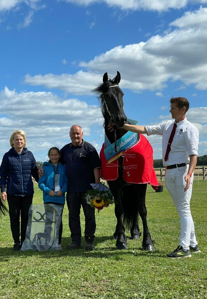 Bij de merrieveulens waren er vier veulens die een tweede premie kregen. De jury koos voor Zoé Black Pearl E.T.-Ranch (Alger 422 x Eise 489) van Tina Schneider als kampioen. ‘Een goed ontwikkeld veulen met een goede stap’, lichtte Dik Brummel toe.