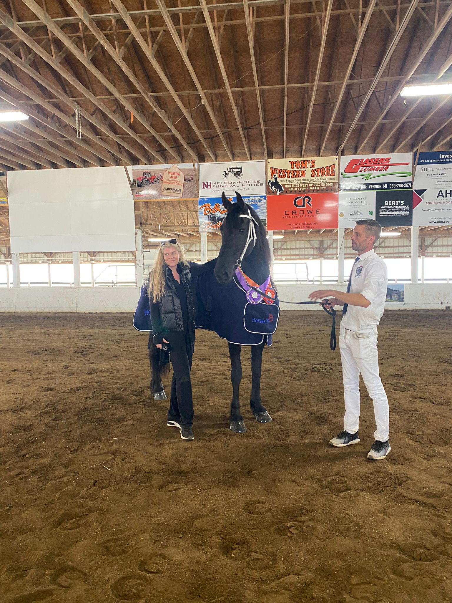 De veulenkampioen ging naar het veulen met een eerste premie: Boutique of Majestic Friesians (Ulbrân 502 x Hessel 480) van Lori Brock