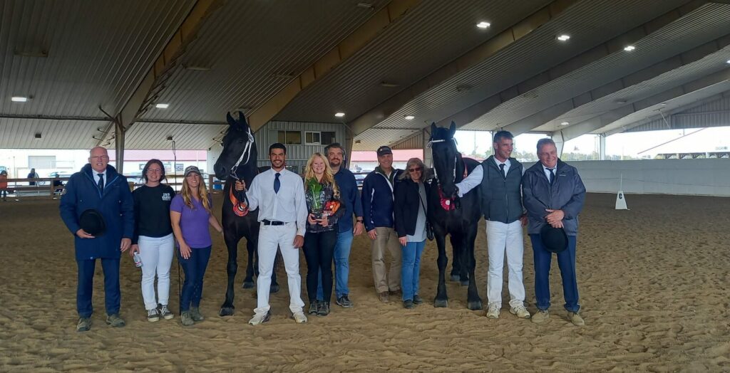 In Springfield kwamen 10 veulens in de baan. Drie kregen een eerste premie, de andere veulens gingen naar huis met een rood lint. Erivo Ulrike MFF (Alwin 469 x Aarnold 471) van Erin Miley, Miley Friesians werd uitgeroepen tot kampioen merrieveulens én het beste veulen van de dag. ‘Een voldoende rassig veulen dat voldoende langgelijnd is met een vlijtige stap en een draf met veel balans en schakelend vermogen.’