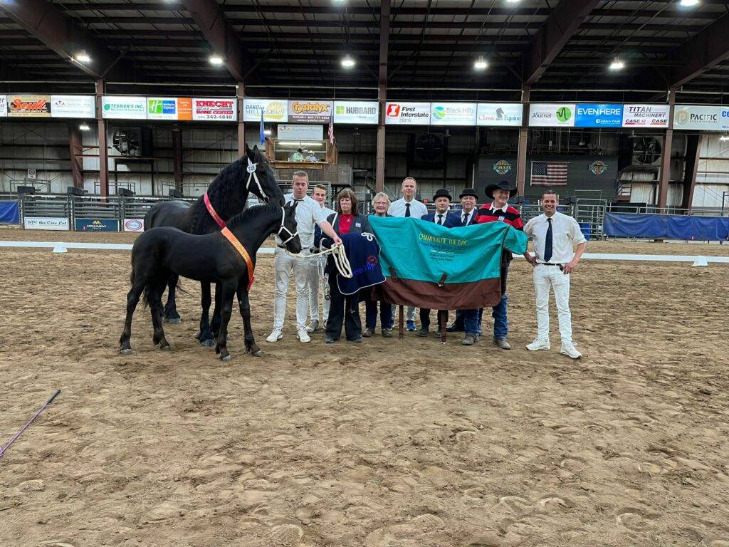 Van de drie getoonde veulens kreeg er één een eerste premie. Hengstveulen Dareonz Balerion Black Gold (Tsjalle 454 x Harmen 424) kreeg naast het oranje lint ook het kampioenslint omgehangen. Reservekampioen werd het tweede premie hengstveulen Draco Black Gold (Wybren 464 x adrianus TMR). Beide veulens zijn gefokt door Black Gold Farm, Dareonz is in eigendom van Rosasharen Shelton.