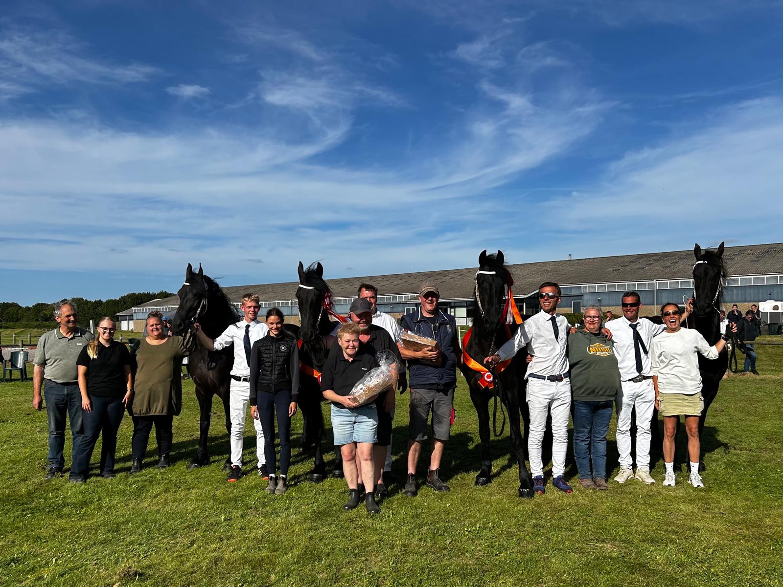 Twee Modelmerries, één Kroonmerrie én twee voorlopig Kroonmerries: de keuring in Denemarken op zaterdag 16 augustus leverde prachtige resultaten op voor de Deense Friese paardenfokkers.