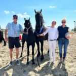 De juryleden kregen ook de 17-jarige Tonjes 459 Sport AA (Anton 343 x Ulke 338) in de baan. ‘Hij heeft zich goed bewaard’, concludeerden ze. De hengst, gefokt door Klaas en Mares Vanderploeg en in eigendom van KCF Farma heeft veel rasuitstraling. ‘Hij stapte voldoende en draafde opvallend goed’, aldus Sabien Zwaga. ‘Daarbij heeft hij een uitstekend karakter. Tonjes 459 heeft een positieve indruk achtergelaten.’