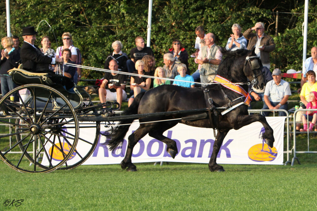 Bij de veulens ging een oranje lint naar Akker van Doorndraai (Reinoud fan ‘e Homar x Onne 376) die een goede ontwikkeling koppelde aan een goede bovenlijn en hard en correct gesteld beenwerk. ‘In draf maakte hij veel houding en met een krachtig gebruik van het achterbeen.