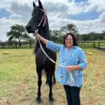 - Modelmerrie Tandora AAA (Tjalf 443 x Friso fan S.) met haar fokker/eigenaar Marlise Botes