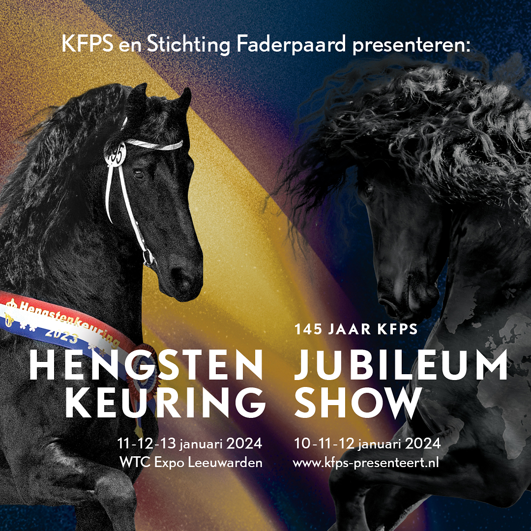 Vanaf woensdag 10 januari t/m zaterdag 13 januari 2024 organiseert KFPS in het WTC Expo in Leeuwarden weer de jaarlijkse Hengstenkeuring en een Jubileumshow. Op woensdagavond, donderdagavond en vrijdagavond gaat er een bijzondere showavond ter gelegenheid van het 145-jarig bestaan van KFPS plaatsvinden. Overdag op donderdag, vrijdag en zaterdag vindt de Hengstenkeuring plaats, een mix van fokkerij, educatie en amusement.