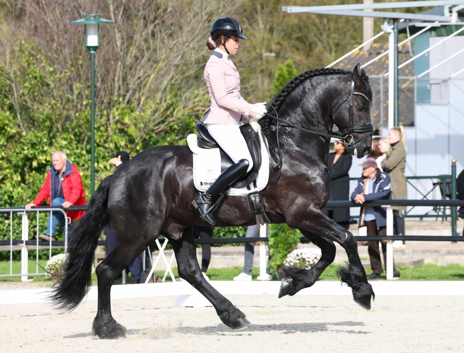 De Maurits 437 nakomeling stond na de eerste proef op zaterdag al aan kop maar wist vandaag de voorsprong te vergroten door 3,8% los te rijden van de nummer twee, Demi van Nispen en haar Eebert DVN (Nane 492). Demi en Eebert – stamboeknaam Eebert van de Egberdina Hoeve Ster, behaalden een totaalscore van 73,5%. Op een derde plek eindigden Laura Roling en Floris van de Terpen Ster (Hessel 480), ook wel bekend als Ed Raket na zijn flitsende optreden bij de Fryso Florian Bokaal, met 72,5%. De beste merrie eindigde op plek vier; Fleur O. Kroon Sport AAA (Markus 491) met haar amazone en eigenaresse Christina Dijkstra.