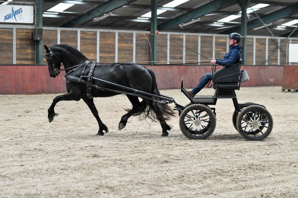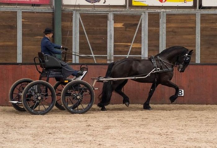 De fokdagkampioen van 2019 in Hilvarenbeek Amalia van de Heemstede Kroon AA (Jehannes 484 x Norbert 444) van Gert en Joke Peek liep vorig jaar nog naar een score van 80,5 punten in de ABFP. Begin januari kreeg ze een merrieveulen van Teun 505, die om in koninklijke sferen te blijven Queen A. van de Heemstede werd genoemd. In de men-IBOP met Jelmer Chardon aan de leidsels toonde ze veel schwung in beweging en een heel gemakkelijke galop. Met vijf achten op het protocol kwam de eindstand op 85 punten en krijgt Amalia AAA achter haar naam.