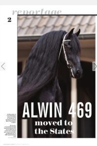 In het artikel interviews met de oude en nieuwe eigenaren, het KFPS en ook de transporteur Horses2fly die de publiekslieveling al over de plas heeft gebracht komt aan het woord. Pascale Drijfhout over de 50 Friese paarden die ze maandelijks naar Amerika vliegen: ‘Als je ergens vertelt dat je een Oldenburger of een Hannoveraan op stal hebt vragen ze of dat een kip of konijn is. Maar als je zegt dat je een Fries hebt weten ze overal op de wereld meteen waar je het over hebt.’