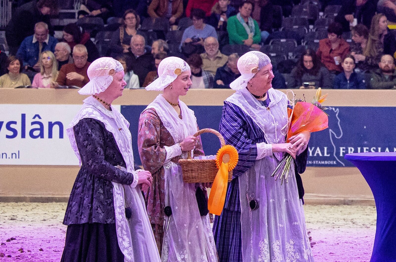 Kenmerkend voor de HK is het uitreiken van de rozetten, linten en bloemen door de lintendames in Fries kostuum. Diana Hooisma-Lantinga, Vronie van Asma-van der Tol en Wilma Reijenga zorgen ervoor dat de juiste aandenkens worden gegeven.