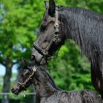 Judith hielp een handje met zoeken en zo kreeg Marloes de drachtige Kroonmerrie Bo van ‘t Lansink Kroon AAA (Hessel 480) op stal. Bo is een dochter van Lobke van ‘t Lansink Ster Sport Preferent Prestatie AAA (Maiko 373 x Oege 267) en daarmee is ze een halfzus van Wyp van ‘t Lansink Model Sport Preferent Prestatie AAA (Beart 411), die genomineerd werd voor Paard van het Jaar 2020. De vijfjarige Bo is door Rinus Loman en Carla Nijdam gefokt en haalde eind 2020 83 punten in haar ABFP-test en werd daarmee definitief Kroon ‘Als je het doet moet je het goed doen door met wat goeds te beginnen, dat weet ik uit ervaring met de springpaarden’, aldus Marloes die vertelt dat Bo op 29 mei een mooi hengstveulentje van Tsjalle 454 heeft gekregen. ‘Ons eerste Friese veulen, en het eerste veulen voor Bo en alles is goed verlopen.’ Op de fokdag in Ambt Delden zal Rintje Rinus v/h Klein Ilsinck zich presenteren op de veulenkeuring. ‘Spannend’, geeft Marloes aan. ‘De Friese paardenwereld is helemaal nieuw voor me.’ Na de veulentijd zullen Marloes en Bo zich op wedstrijden laten zien. ‘En we gaan ernaartoe werken om haar Model te krijgen.’