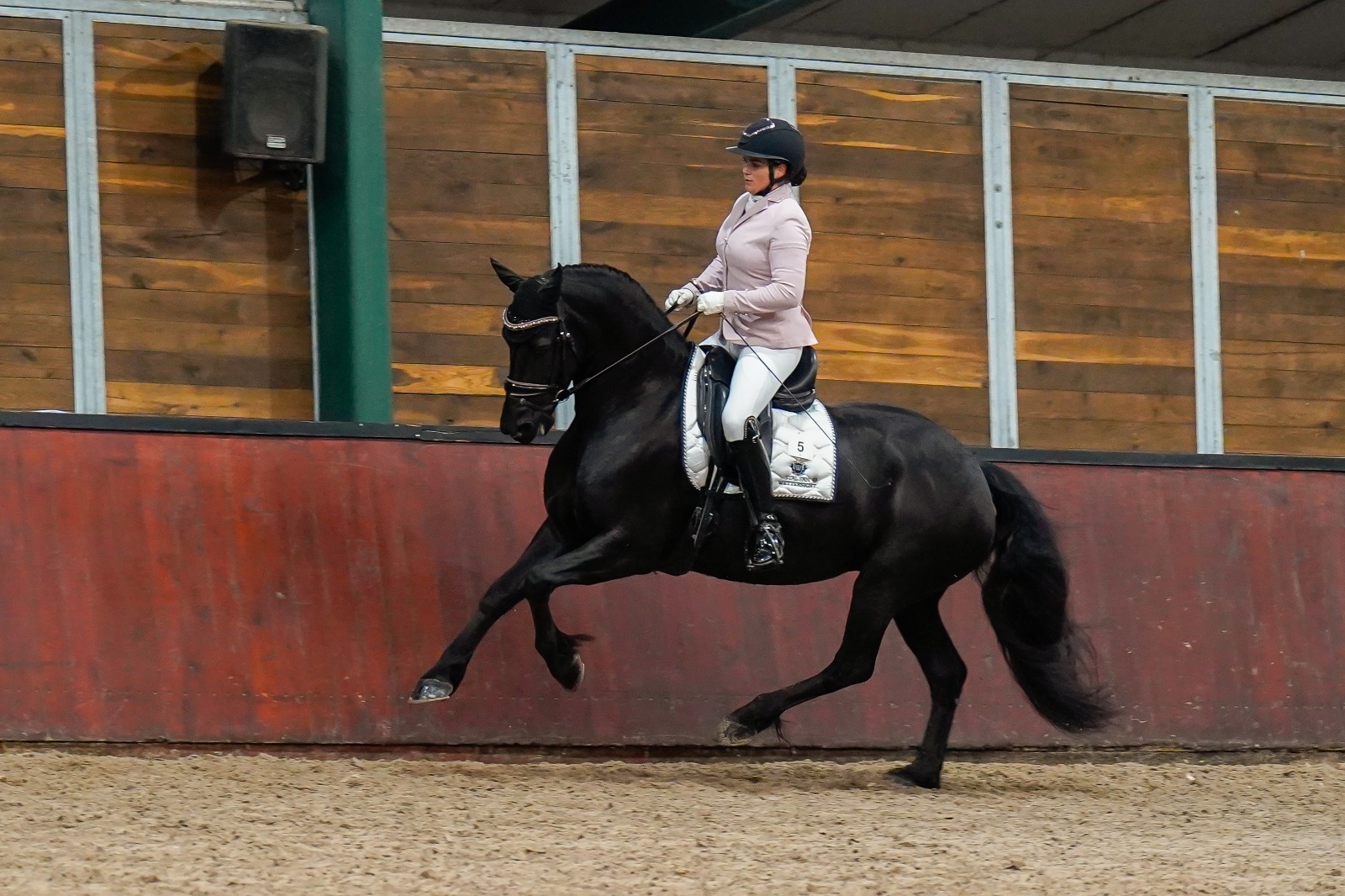 De tweede hoogste score was voor de vierjarige Nino M. AAA (Tiede 501 x Lammert 260), gefokt door W.J. Meuleman uit Drogteropslagen en in eigendom van Edwin van Onselen uit Ansen. Nino werd door Marell Hilberts naar een score van 90,5 punten gereden waarbij het protocol vol stond met 8 en 8,5. Daar bleef het niet bij voor Black Beauty Stables. Ook Jibbe fan de Groote Weele Ster AAA (Alwin 469 x Jerke 434) haalde een triple A-predicaat dankzij 87,5 punten in de proef onder het zadel met Marell.