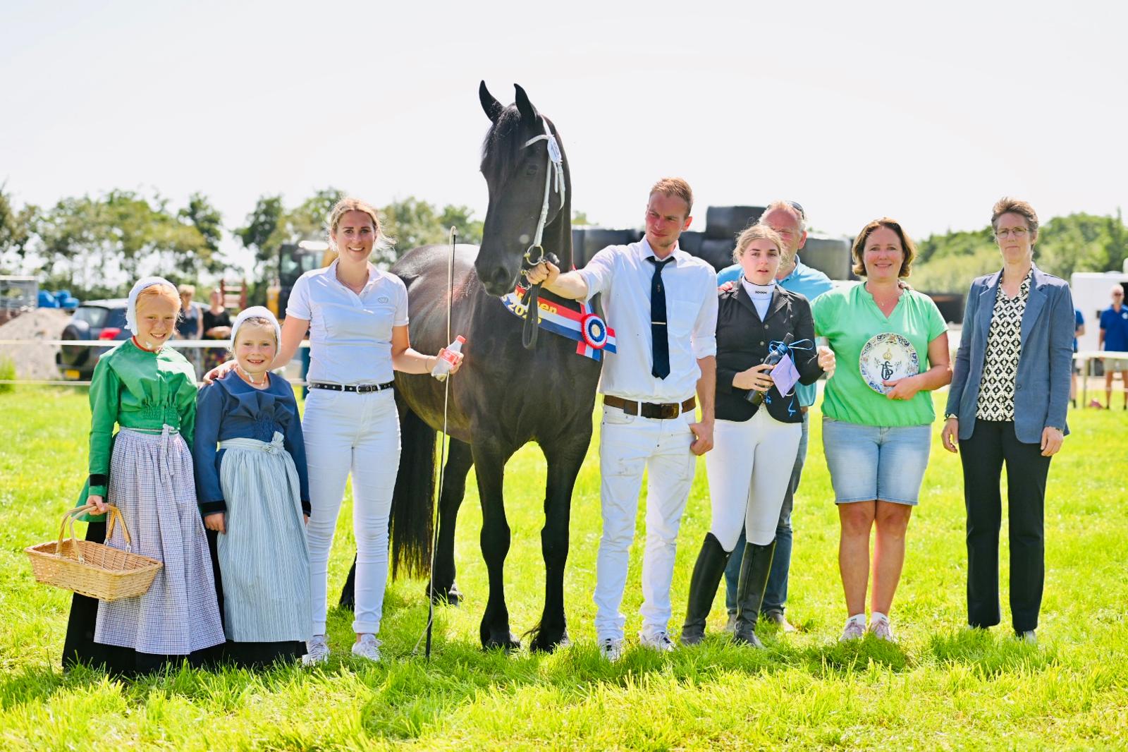 De altijd gezellige en zonnige fokdag van et Hossefolk op Terschelling bracht Friese paarden en veel publiek naar het keuringsterrein in Hoorn. De rastypische Anna presenteerde zich sterk in stap en draf en kreeg het kampioenslint omgehangen. Eigenaren Gert van Dijkhuizen en Margriet Griffioen mochten het stamboekbord in ontvangst nemen en hebben daarmee voor de tweede keer op rij de algeheel fokdagkampioen. Vorig jaar was het nog Jaakje fan Wettersicht Kroon AAA (Uldrik 457 x Tsjalle 454) die naar het goud liep. Dit jaar was het haar tweejarige dochter die de baan inging. Yfke haalde een eerste premie en werd opgesteld als jeugdkampioen.
