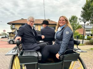 De initiatiefnemers Sabien Zwaga, zus Marjon, Louwrens Mellema droegen deze kalender op aan Louise Hompe, de KFPS inspecteur die begin mei 2023 overleed aan de gevolgen van kanker. Bij dit officiële moment waren dan ook Ralph Wijnmaalen, de man van Louise en haar paardendochter Marrit van Ingen Schenau aanwezig. Ze werden net als de andere gasten vervoerd in een koets voortgetrokken door Friese paarden. Gert van Dijkhuizen met zijn tweespan en open landauer haalde de Commissaris van de Koning hoogstpersoonlijk thuis op en reed met burgermeester, Sabien en Marjon naar Franeker voor de eerste overhandiging. Elbert-Wim Andela en Hiltje Holtrop vervoerden Ralph en Marrit met hun éénspan.