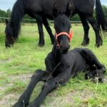 Jaaa, daar is ze dan! Onze Stermerrie Roza fan de Kromme Jelte (Lolke 371 Sport x Foppe 290) heeft afgelopen vrijdag een prachtig veulen op de wereld gezet. En dit keer heeft ze ons verrast. Het was vorige week donderdag een warme dag, de paarden stonden ’s avonds rustig in het land te genieten van een zacht briesje bij een ondergaande zon. Ik haalde Roza er tussen uit en zette haar op stal om haar brok te voeren en om te kijken of ik al iets aan haar kon zien.