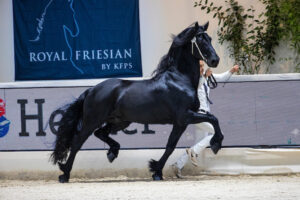 ‘We hebben 9000 minder bezoekers, maar we gaan er een mooi feest van maken’, zo startte Bert de Ruiter de zaterdag van de Online Hengstenkeuring 2021! De keuring begon met rubriek 3: keuring van de ingeschreven stamboekhengsten tot en met 12 jaar. Samen met de hengsten van 13 jaar en ouder zullen ze aan het einde van de dag strijden om het kampioenschap bij de oudere hengsten.