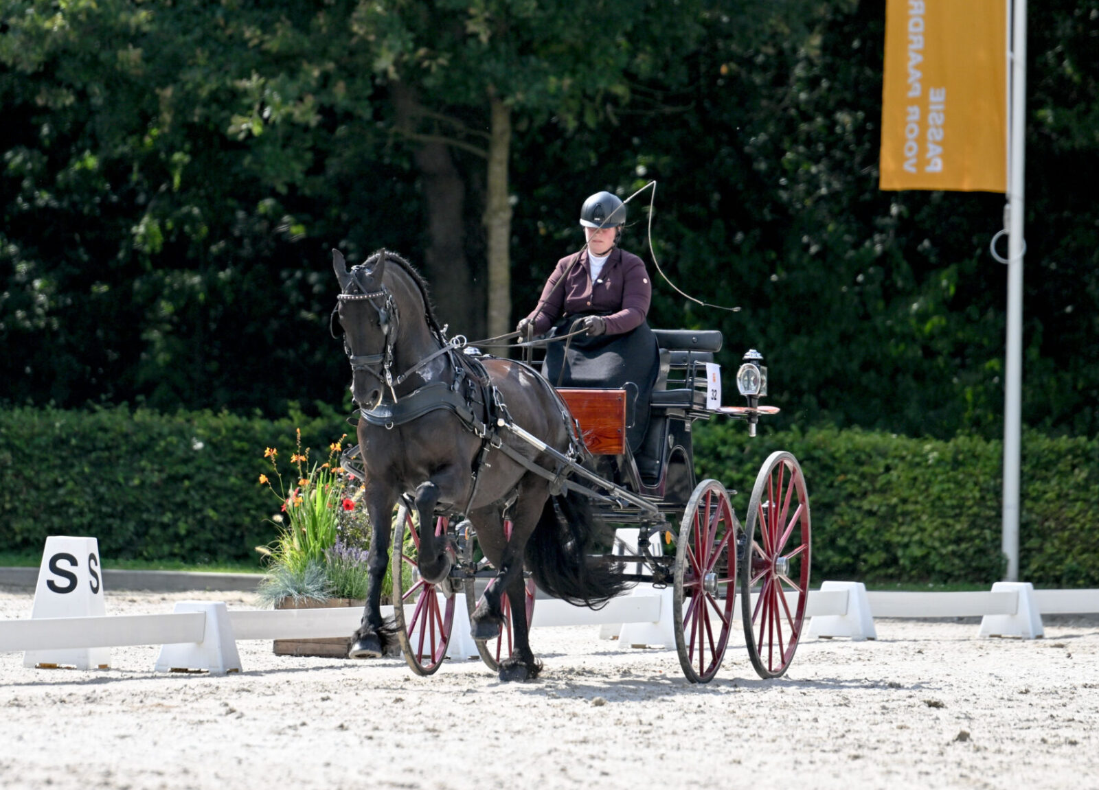 Na de dressuur en het mennen rolden de dames eigenlijk ook haast vanzelfsprekend in het tuigen. ‘Ik vind dat fantastisch’, geeft Renate aan. ‘Oukje is niet echt een tuigtypisch paard, maar ze maakt zich wel groot voor de wagen.’ Inmiddels voorzien van sjees en kostuum leerde Renate samen met Oukje de fijne kneepjes van het tuigen en dat resulteerde eind juli dan ook in het derde Sportpredicaat, oftewel wederom Sport Elite. En dat terwijl ze nog een merrieveulen van Hilbrand 525 aan de voet heeft lopen. ‘Oukje vindt alles leuk om te doen’, beschrijft Renate. ‘Ook een bosrit maken, maar uiteindelijk denk ik dat dressuur en mennen haar het meest liggen. In de dressuur is ze heel fanatiek, het mennen doet ze met heel veel gemak.’
