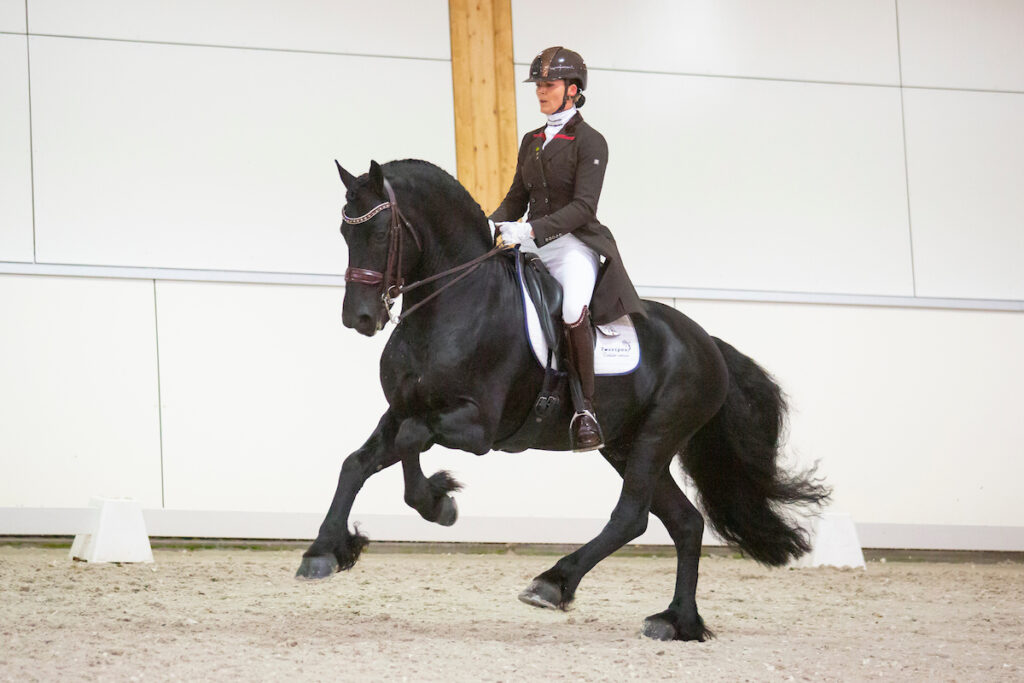Hoewel Patty Hartman veel paarden voor eigenaren uitbrengt in de sport, wordt Douwe (Tsjabring 429) hopelijk haar eerste subtop-paard. De meeste paarden worden verkocht als ze het Z-dressuur halen, maar de Friese hengst wilde ze niet kwijt. ‘Ik wist dat ik er goed ziek van zou worden als hij weg zou gaan, hij is echt mijn vriend’, vertelt ze.