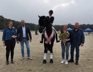 Jurylid Herman Wientjes was vol lof over de kwaliteit van de vierjarige paarden en sprak de hoop uit zowel de hengsten als de merries weer terug te zien in de dressuurbaan. ‘Ik hoop dat eigenaren tijd en geduld hebben en willen investeren om deze paarden ook verder op te leiden, zodat we ook hun ontwikkeling kunnen volgen.’