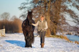 Om zich alvast voor te bereiden op een eventuele verkoop liet Pietje haar paard afgelopen zomer klinisch en röntgenologisch keuren. ‘Dan weet je wat je te verkopen hebt, maar dat verkoopmoment schoof ik eigenlijk nog voor me uit. Kan komende winter ook nog, dacht ik.’ Het was anderen echter wel ter ore gekomen en zo kreeg Pietje een telefoontje van de chef van de koetsstal van het Koninklijk Huis. ‘Hij kwam kijken of Rembrandt het type had dat ook bij hun andere paarden paste, en hoe zijn karakter is.’