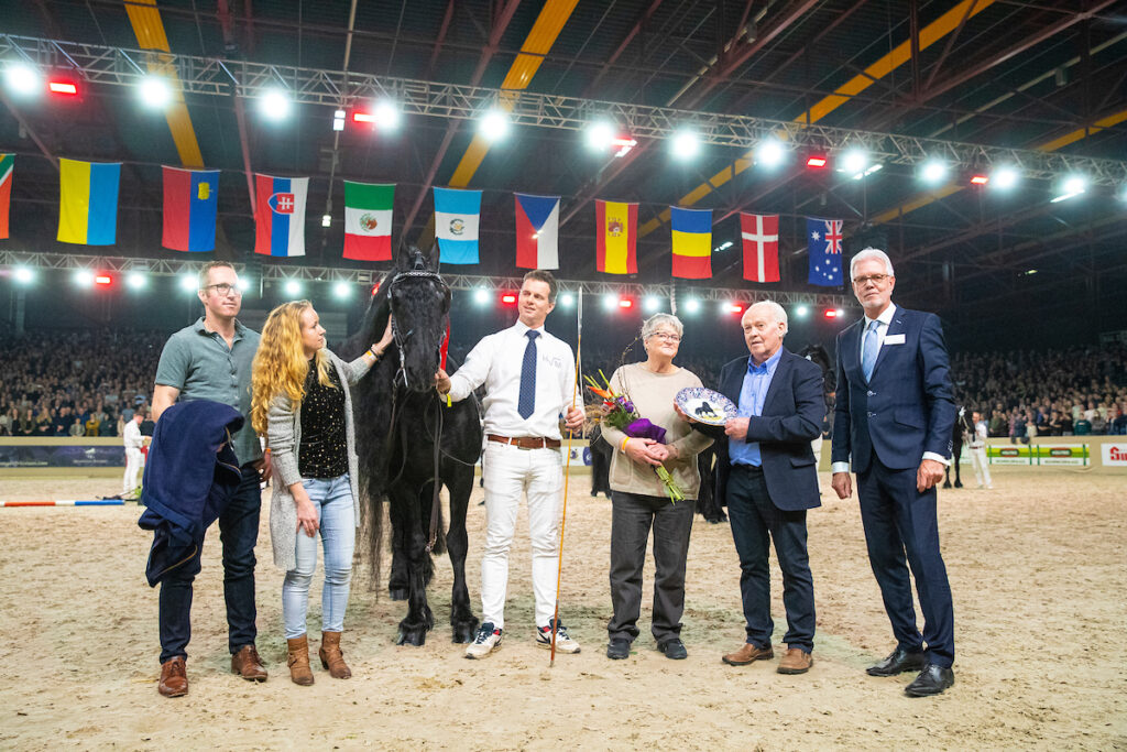 Sinds 1 mei is er alleen nog diepvriessperma beschikbaar van de preferente hengst, die zo’n stempel op de Friese paardenfokkerij drukte. De hengstenkeuring was ook echt het laatste optreden voor Jasper, vertelt Wijma. ‘Als Jasper publiek ziet, wil hij alles geven. Hij gedraagt zich als een showman. Wij vinden echter dat we daar wel rekening mee moeten houden. In hoeverre heeft een ouder paard als hij de dagen erna nog spierpijn? Wij willen hem dat besparen, want hij heeft zichzelf meer dan genoeg bewezen.’