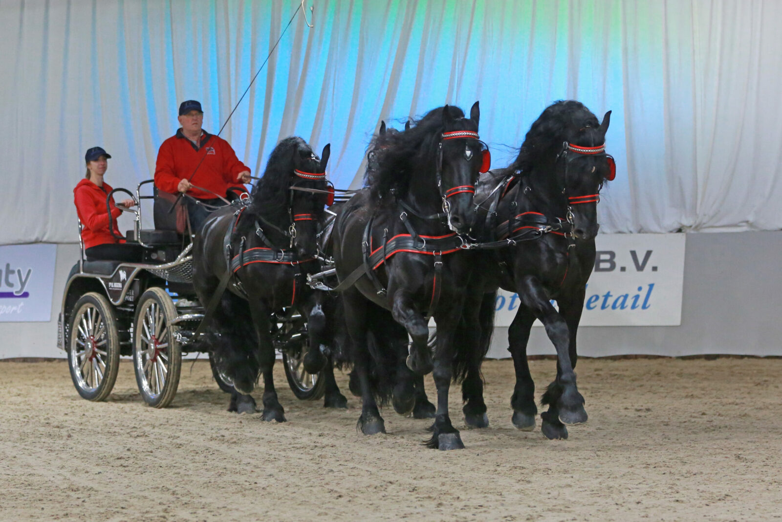 KFPS stamboekhengst Michiel 442 presenteerde zich als Sport Elite hengst voorop in het vierspan met drie zonen. Anne Okkema reed met veel flair het vierspan op zaterdag 15 januari door de baan. Michiel 442 is gefokt door de vorig jaar overleden Harry Witteveen, de ‘godfather’ van de Friese paarden in Canada. De hengst is in eigendom van Harm Mulder. De veelzijdigheid van Michiel 442 is indrukwekkend. Grand Prix dressuur, voor de wagen, voor de sjees, voor de maaimachine, op het ijs of in shows: Michiel 442 kan en doet het allemaal.