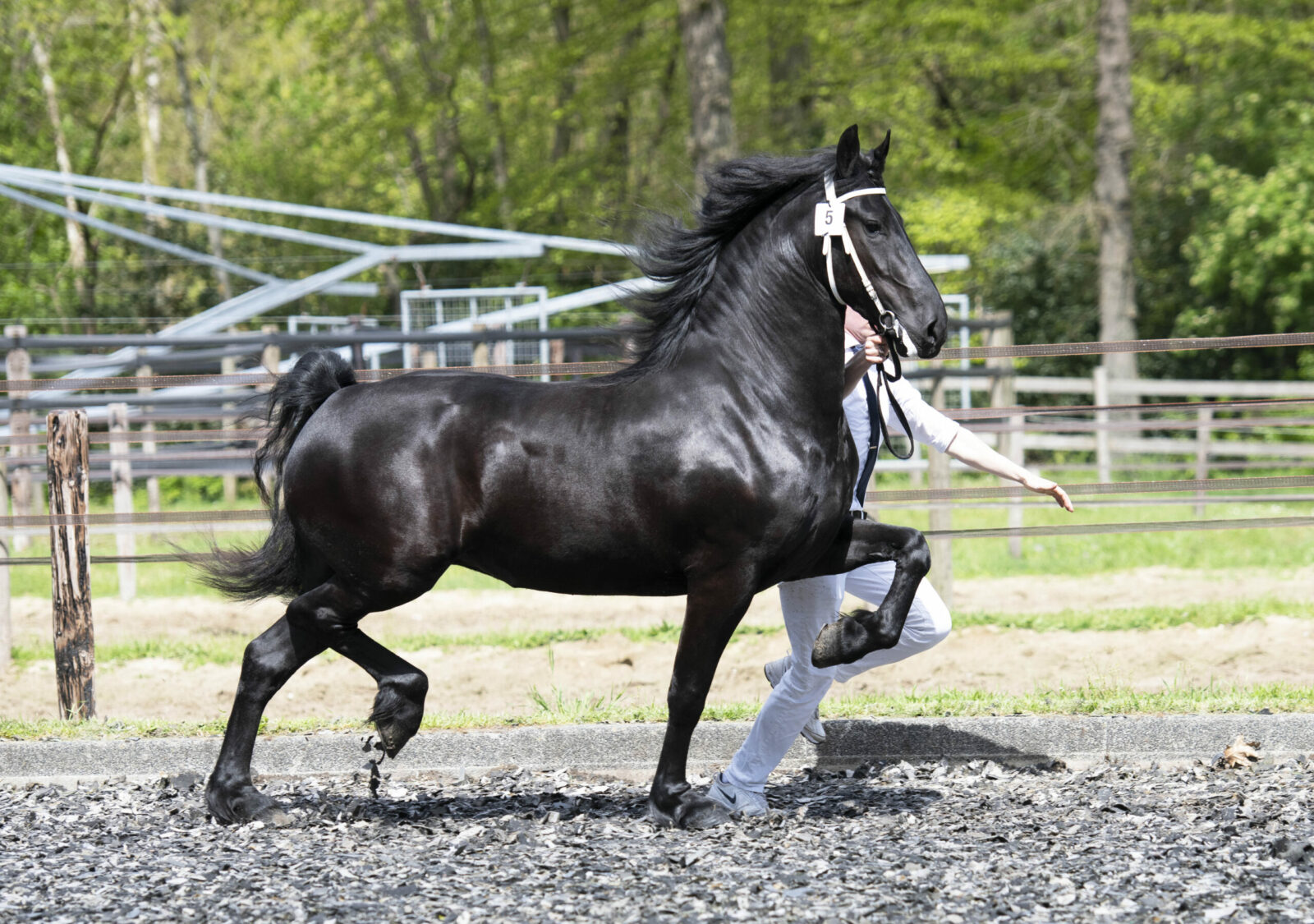 De rastypische Bonne von Ihlow (Jehannes 484 x Doaitsen 420) met zijn luxe hoofd, stapte en draafde met veel lossigheid door de baan en verdiende daarmee het rode lint.