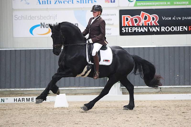 ‘We zijn beginners op het gebied van de fokkerij van Friese paarden, en dus hebben we links en rechts veel advies ingewonnen’, aldus Diantha. ‘Gelske komt uit een mooie bloedlijn, maar welke hengst zouden we voor haar kunnen inzetten? Jehannes 484 leek een goede match, en dus werd ze van hem geïnsemineerd. Helaas lukte het vorig jaar niet om haar drachtig te krijgen – waarschijnlijk was de combinatie trainen én insemineren iets teveel voor haar.’