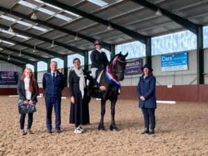 Aaike maakt in de rubriek van vier jaar en oudere merries promotie naar een Ster tweede premie. Met 73 punten haalde de merrie van Carrie in de ochtend de hoogste IBOP score. Ze werd netjes voorgesteld, zo zag de jury. Ze combineerde een goede stap met goed schakelen in beweging.
