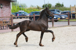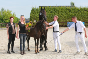Ester Reen, de voorzitter van de jury bij de merrieveulens, omschreef de middag als ‘gemoedelijk’ met warm, windstil weer en leuke veulens. Naast de drie oranje linten, konden de juryleden negentien tweede premies toekennen, een prima resultaat. Het kampioenschap ging tussen de snittige, heel deftige Tjalda fan de Tjongershoeve (Ulbrân 502 x Bikkel 470) van Jansje de Jong-Boonstra, Viènna S.R. (Fonger 478 x Veerle S.R.) die door Sjoerd Ruiter werd gefokt uit Veerle S.R. Kroon Sport AAA (Thorben 466) en de iets meer barokke Tineke Antje WT fan de Boerdam (Tiede 501 x Hette 481) van Tineke de Boer uit Noordwijk. En juist die laatste ging er met de titel beste merrieveulen vandoor: ‘Dit veulen was iets minder luxe, maar had in beweging zoveel over. Ze stapte echt heel goed voor een veulen, lekker door lichaam. Het is een sterk veulen, ze mocht iets horizontaler in de hals maar stapte ruim en kordaat en vertrok in draf mooi met schoft omhoog,’ aldus Reen.