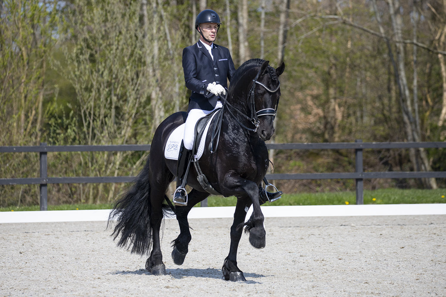 Met twaalf winstpunten in 5 wedstrijden is ruiter Bennie van Es meer dan tevreden: ‘We hadden natuurlijk niet zoveel wedstrijdritme door al het gedoe rondom corona, maar eigenlijk vanaf onze start in de Prix St. George deze zomer merkte ik dat Tizian het werk goed aan kan.’ Met scores tussen de 68 en 72% lijkt dat bijna een understatement maar Bennie is vol vertrouwen wat betreft de hengst. ‘Het is gewoon echt een heel goed paard met veel kracht en uithoudingsvermogen, ik hoef niet veel te vragen want hij doet het in de baan gewoon voor me.’