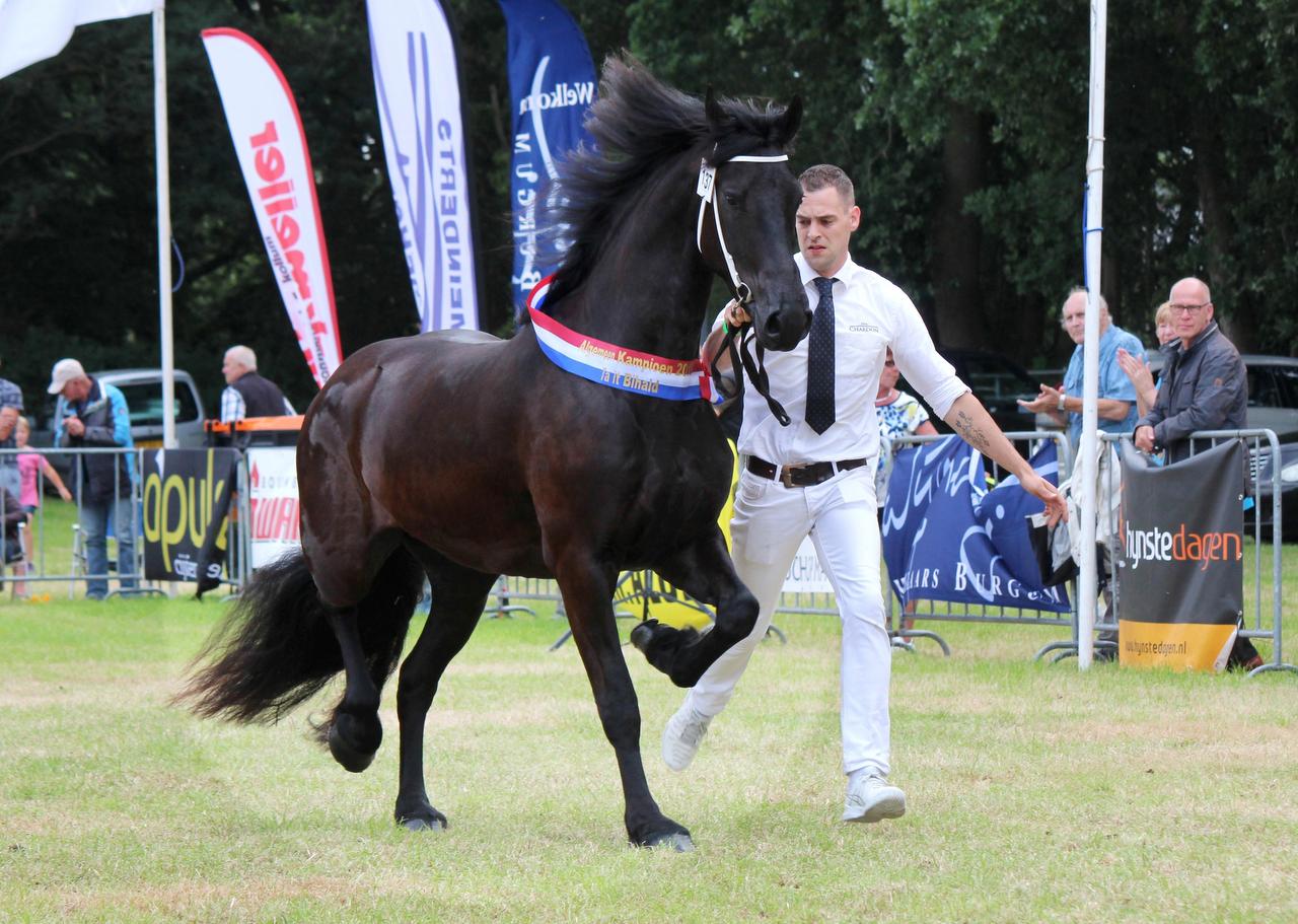 Na de eindbeoordeling van de tweeweekse ABFP-test kan het stamboek twee nieuwe merries in het Kroonregister bijschrijven. De hoogste score was voor de vierjarige Jehannes 484-dochter Barran van it Waad (foto) fan Theo Bruggeling uit Holwerd. Barran werd vorig jaar als driejarige uitgeroepen tot algemeen kampioen van de fokdag van fokvereniging Ta it Bihâld. Met haar triple-A ABFP-score van 83.5 punten onderstreept ze haar kwaliteit. Ook de 9-jarige Lutske D. fan Sumar van Durk Deelstra uit Sumar mag zich na vandaag Kroonmerrie noemen, mede dankzij haar mooie score van 80.5.