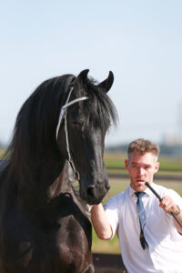 Bij de Kroonmerries mocht er één terugkomen in de tweede ronde. Sinne van Stal Lagevoort Kroon AA (Beart 411 x Andries 415), de fokdagkampioene van Hilvarenbeek in 2017. De zevenjarige merrie heeft een aansprekend rastype, een royale voorhand, is langgelijnd en sterk gebouwd. In stap was ze wat gespannen en druk, in draf laat ze veel vermogen zien en liep ze fijn over de rug. Ze ontving van de jury een overtuigende eerste premie. Sinne, gefokt door Jan en Maria van Driel uit Liessel en in eigendom van M.A.M. van den Akker uit Heesch, presenteerde zich in de tweede ronde ook goed. ‘Een hele goede eerste premie Kroonmerrie’, luidde de toelichting van Jan Hellinx. ‘Ze heeft een goede, krachtige stap en draf, maar voor Model zou ze nog meer schakelend vermogen en souplesse mogen tonen.’