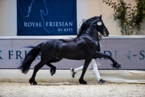 ‘Een kleine groep hengsten, maar met heel veel kwaliteit’, complimenteerde Sabien Zwaga de jonge hengsten uit rubriek 5, goedgekeurd vanaf dekseizoen 2018. De soepel bewegende Tymen 503 verdiende een plek in de finale, net als Tjebbe 500.