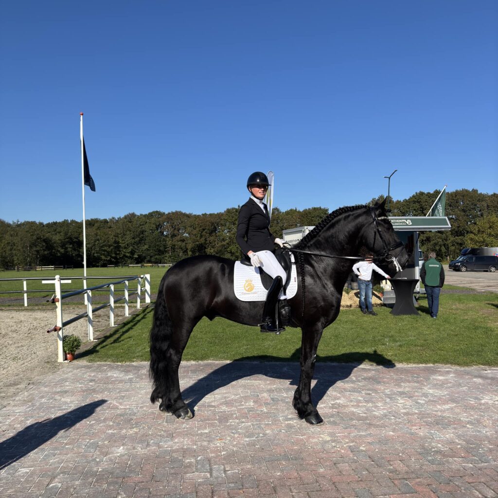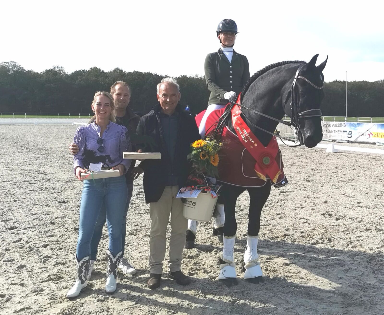 Heleen de Haas met Finne T. fan ‘e Boppelannen (Jehannes 484) en Hennie Roffel en Arizona TKJ (Hette 481) zaten na de eerste dag dicht in scores bij elkaar. Dat zou nog een spannende finale worden. Hennie werd eerste, maar niet met Arizona. Die kwam op plek twee. Nee, het kampioenschap haalde ze met Jack Daniels TKJ (Alwin 469) waar ze een hele sterke finaleproef mee reed. Heleen en Finne werden in het totaalklassement derde. De beste merrie werd gereden door Tess Dedden met Evelyn P (Nane 492).