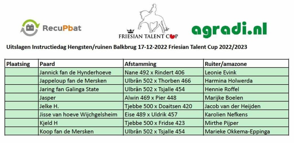 In de eerste 24 uur dat de inschrijving voor de Friesian Talent Cup is geopend hebben zich al 155 combinaties aangemeld. De animo om zich vanaf woensdag 21 september op te geven voor deze competitie voor driejarige Friese paarden met dressuuraanleg is enorm groot. Hofleveranciers bij de jonge paarden zijn Alwin 469, Tymen 503 en Jehannes 484.